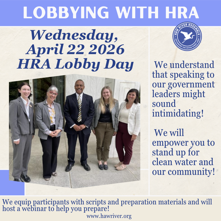 Monday, April 20: Virtual Advocacy Training, 6 to 7 pm Wednesday, April 22: Lobby Day with your Haw Riverkeeper |